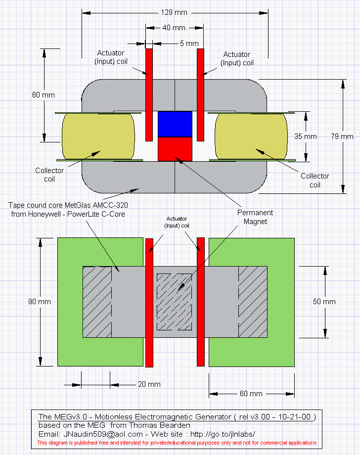 Jeder Magnet hat diesen "Außen"-Rückweg der Feldlinien, normalerweise in der Luft. Im Außen-Kreis wird über die rechte Spule ausgekoppelt, während der Verdichtung, wenn die Steuerspulen die rechte Seite freigeben und die Magnetlinien am ausbreiten sind. Die linke Seite hat zu dieser Zeit nichts mehr vom Magneten drin, dafür aber die von der linken Spule induzierte magnetische Feldstärke in Gegenrichtung. In der anderen Hälfte, wenn es links runter geht wegen der Magnetzuschaltung, würde die rechte Spule auch in Gegenrichtung ihre Induktion einspeisen - wenn sie könnte, aber über die Last ist alles schon abgeflossen. Der Magnet wird auf diese Weise leer gesogen, ohne seine Struktur zu zerstören: In der Mitte steht immer alles in der richtigen Richtung bezüglich dem Hauptfluß. Seine Struktur ist primär für das Feld, also bleibt es erhalten. Die Quelle ? Was ist denn immer die Quelle eines Magneten ? Der Magnet ist nur ein kristallines Atom. Jedes Atom ist ein Tornado und hat eine Quelle, zu jeder Zeit hängt es an ihr. An dieser Quelle hängt auch die MEG. So, das war ich. Heute ist HDR hier und er hat folgende Meinung: Das "Leergesogen" ist übertrieben, es müßte dann viel mehr Ausbeute sein. Vielmehr ist das Weicheisen die ganze Zeit fast voll gesättigt vom Magneten, und nur Fluktuationen im Sättigungsbereich bringen den kleinen Effekt. In diesem Sinne müßte sogar ein schwächerer Magnet, oder ein Magnet mit Luftspalt zum Kern, oder sogar ein Luftspalt im Kern, wie etwa ein Papierstreifen zwischen den beiden Hälften, zu einem besseren Ergebnis führen. HDR MfG neu gefundene Links: