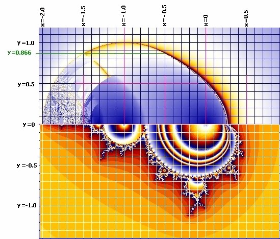 Die Zweier-Zyklen liegen im mittleren Blau, die Viererzyklen im Dunkelblau, genau wie beim Apfelmännchen.