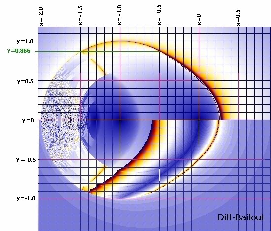 Hier ein Vergleich mit dem Apfelmännchen Z = Z^2 + C (koppl=0).