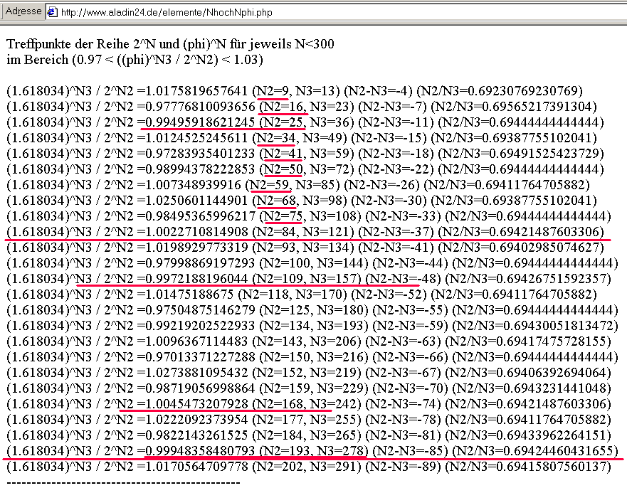 hier die Listen von 2^Ni=(4/2)^Ni mit