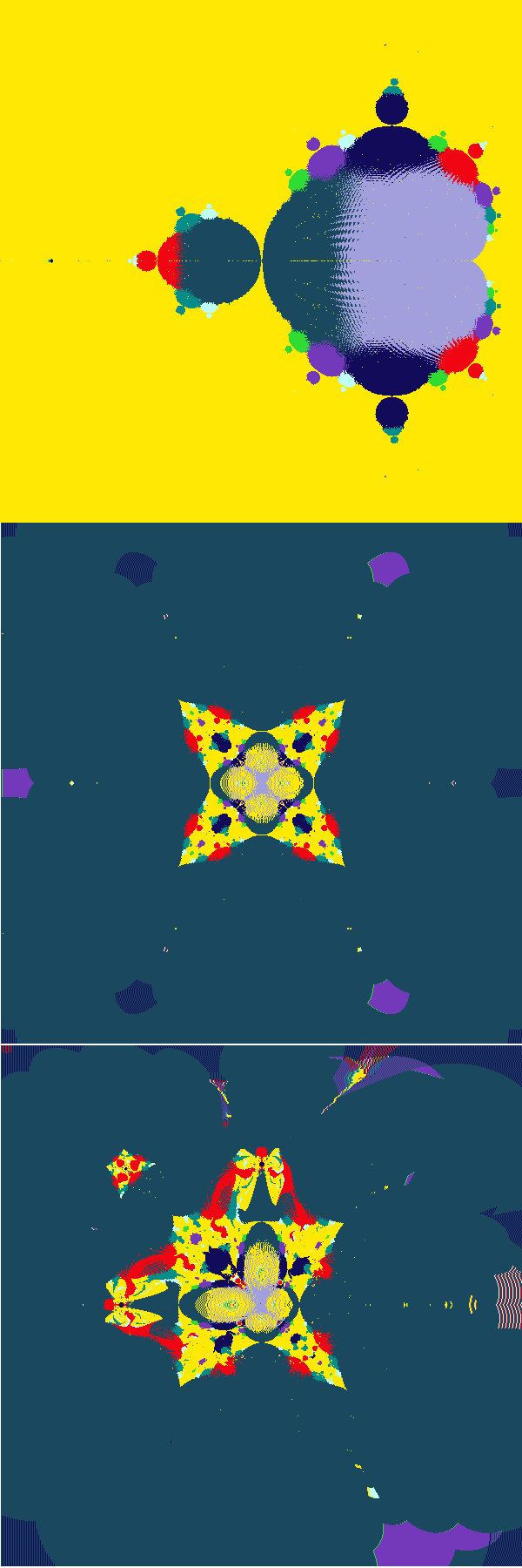 Mindestens eine Subtraktion muss in der Funktion vorhanden sein, um durch Kompensation von Teilgrößen in wiederkehrende Zyklen zu gelangen. Man beachte, dass Z und C genauso oft negative Komponenten haben können wie positive. Und wenn Z kleiner als Eins ist, verhält sich Z^2 wie sonst ein 1/(Z^2).