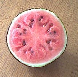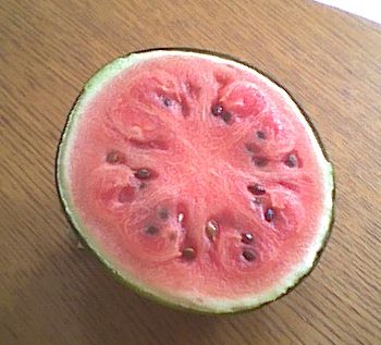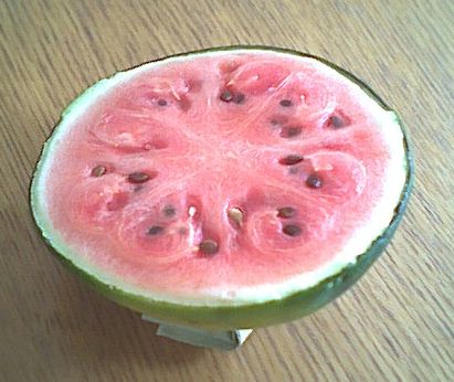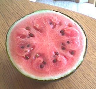 nach unten. Eine davon abgeschnittene (1cm breite) Scheibe lag
