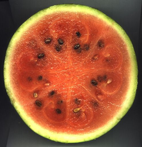 im Kühlschrank auf einem Teller gelagert, mit Schnittfläche